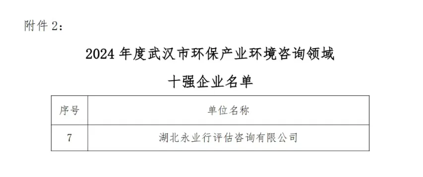 永业行入选2024武汉环保产业百强及环保咨询十强
