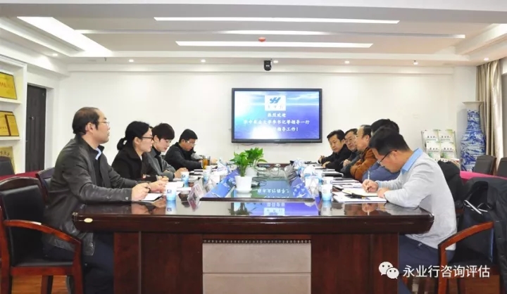 永业行总裁潘世炳对考察组一行表示了热烈欢迎,并对公司的发展概况、技术研发、管理创新、永业行等进行了简要介绍。永业行副总裁王琴、助理总裁雷小军、国土业务副总监吴学锋、运营副总监肖莉等参加了座谈。